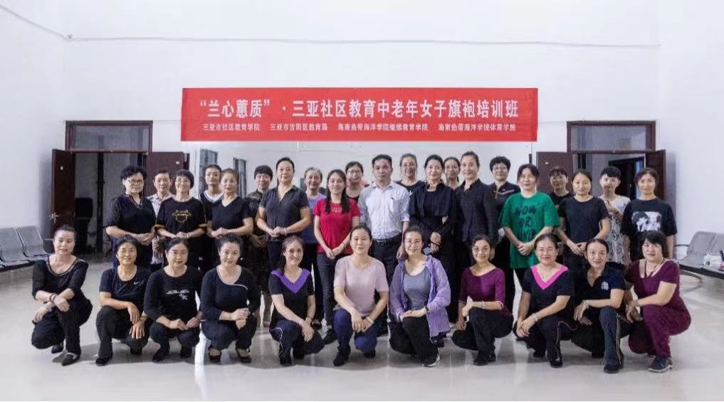 三亚市社区教育学院、吉阳区教育局、海南热带海洋学院继续教育学院、海南热带海洋学院体育学院开展一期以“兰心蕙质”为主题的中老年女子旗袍培训班,为期1个月。授众人群为三亚市吉阳区南新社区居民、丰塘村、南丁村妇女,共计30名学员参加。活动特聘请专业礼仪模特教师郝春梅、田宏2人授课。